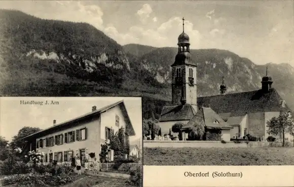 Ak Oberdorf Kanton Solothurn, Kirche, Geschäft von J. Arn