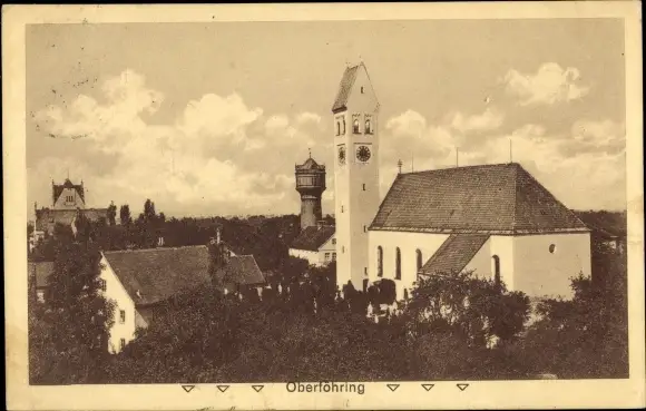 Ak Oberföhring München Bayern, Teilansicht, Kirche, Wasserturm