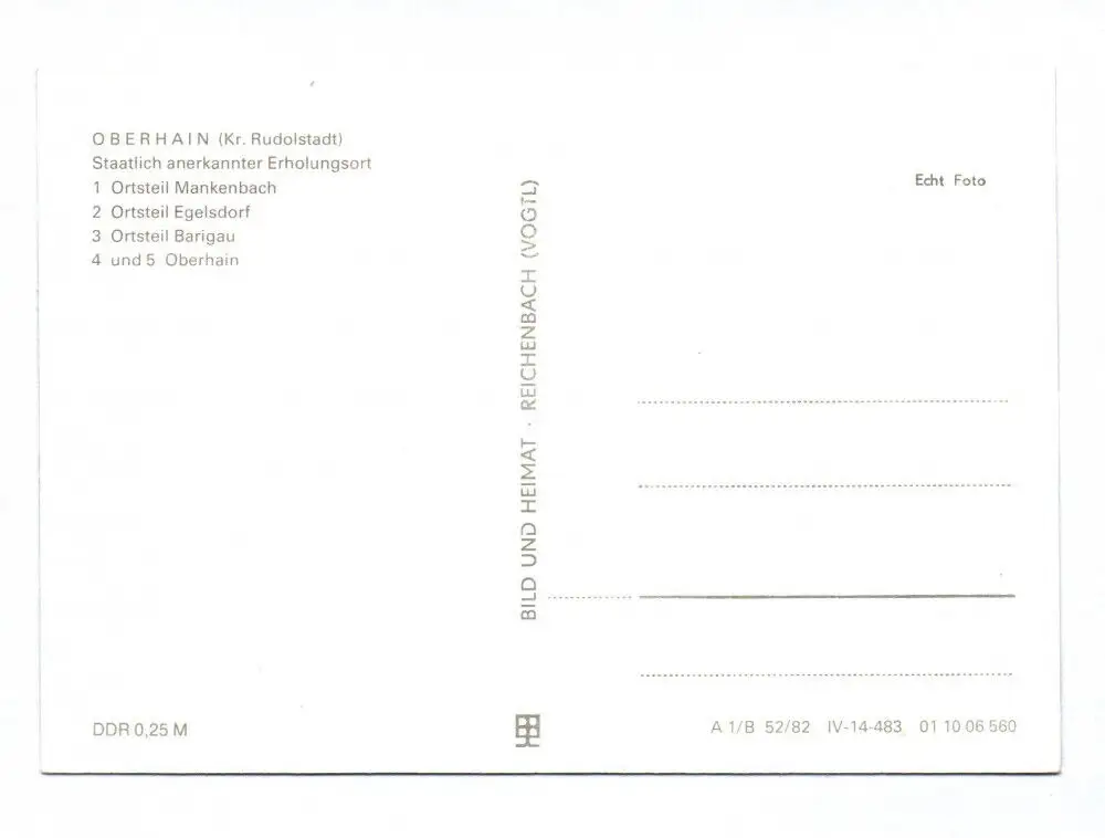 Ak Oberhain Kreis Rudolstadt Staatlich anerkannter Erholungsort DDR