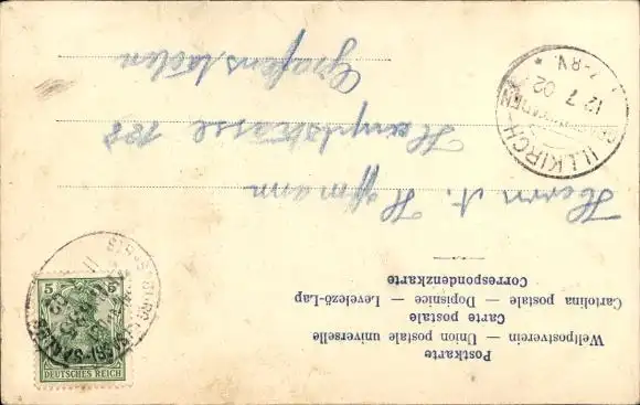 Zustand, siehe Scan, gelaufen, 1902 - ca 3 cm X 5 cm