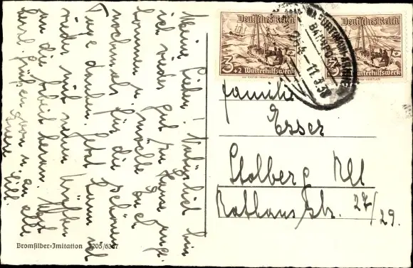 Zustand, siehe Scan, gelaufen, 1938 - ca 14 cm X 9 cm
