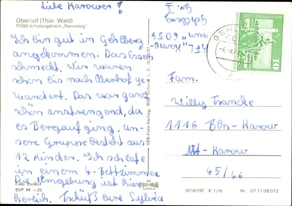 Ak Oberhof im Thüringer Wald, FDGB-Erholungsheim Rennsteig, Straßenpartie