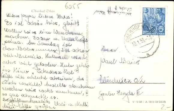 Zustand, siehe Scan, gelaufen, 1955 - ca 9 cm X 14 cm