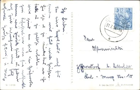 Zustand, siehe Scan, gelaufen, 1954 - ca 14 cm X 9 cm