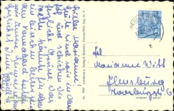 Zustand, siehe Scan, gelaufen, 1957 - ca 14 cm X 9 cm