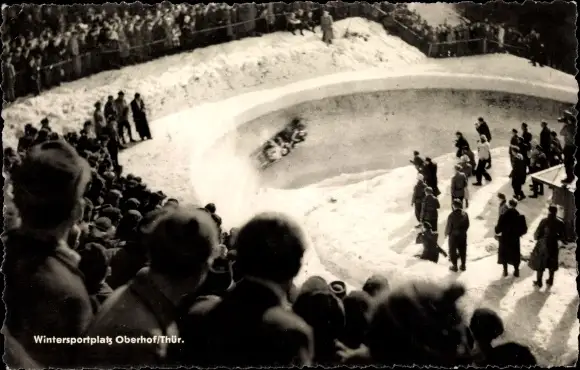 Ak Oberhof im Thüringer Wald, Zuschauer an der Bobbahn