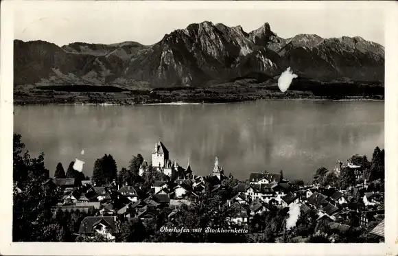 Ak Oberhofen am Thunersee Kanton Bern, Ort mit Stockhornkette
