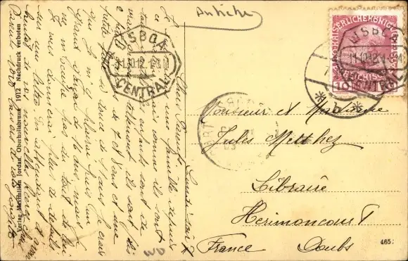 Zustand, siehe Scan, gelaufen, 1912 - ca 14 cm X 9 cm