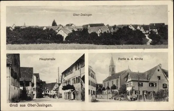 Ak Oberjesingen Herrenberg in Württemberg, Kirche, Hauptstraße, Totalansicht