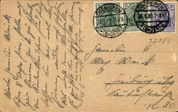 Zustand, siehe Scan, gelaufen, 1920 - ca 14 cm X 9 cm