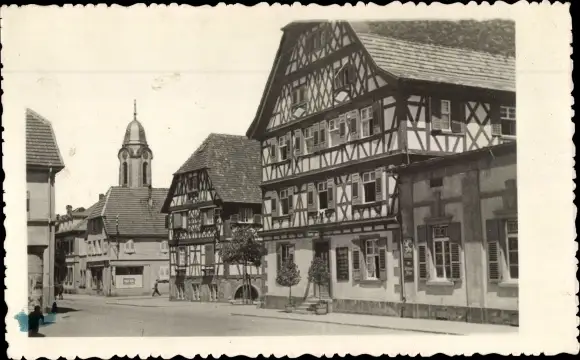 Ak Oberkirch im Renchtal Baden, Straßenpartie, Kirche