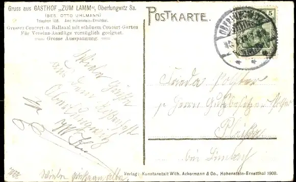Ak Oberlungwitz in Sachsen, Gasthof Zum Lamm, Inh. Otto Uhlmann