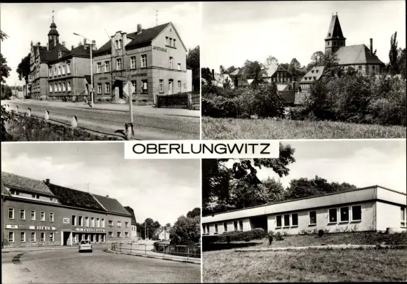 Ak Oberlungwitz in Sachsen, Kirche, Gasthof, Bungalow, Apotheke