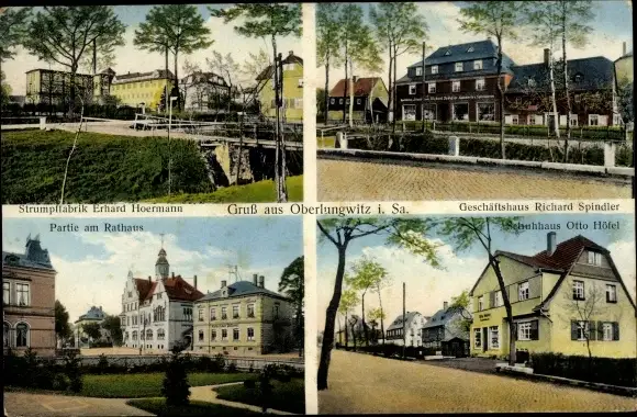 Ak Oberlungwitz in Sachsen, Partie am Rathaus, Geschäftshaus Richard Spindler, Strumpffabrik