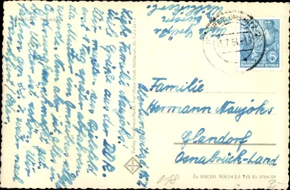 Zustand, siehe Scan, gelaufen, 1954 - ca 14 cm X 9 cm