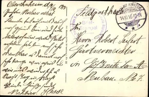 Zustand, siehe Scan, gelaufen, 1915 - ca 14 cm X 9 cm