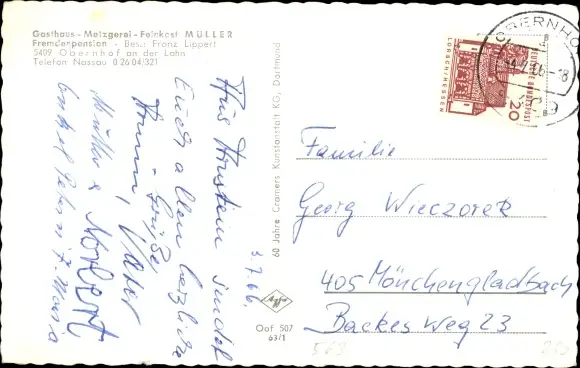 Zustand, siehe Scan, gelaufen, 1966 - ca 14 cm X 9 cm