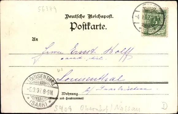 Zustand, siehe Scan, gelaufen, 1897 - ca 14 cm X 9 cm