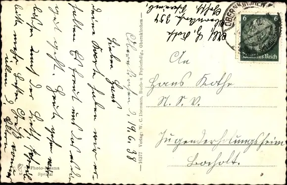 Zustand, siehe Scan, gelaufen, 1938 - ca 14 cm X 9 cm