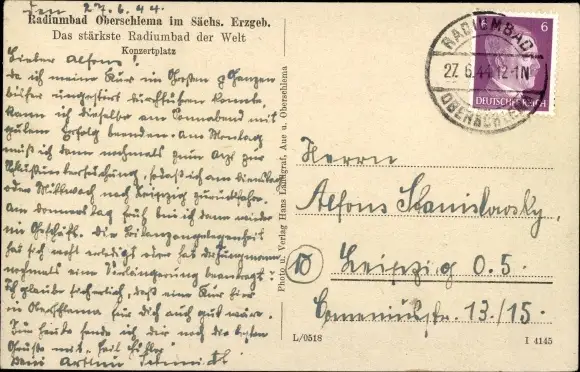 Zustand, siehe Scan, gelaufen, 1944 - ca 14 cm X 9 cm