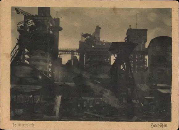 Ak Oberschlesien, Hüttenwerk, Hochöfen