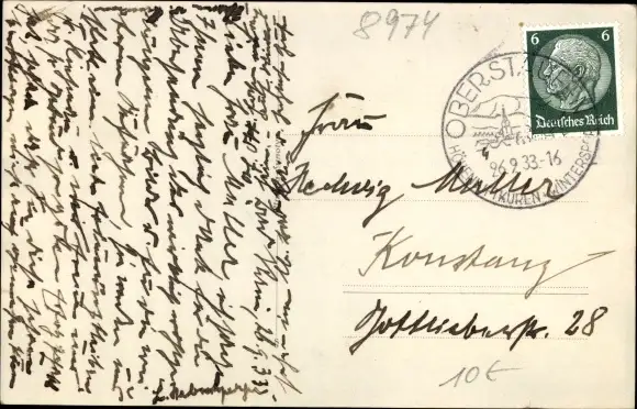 Zustand, siehe Scan, gelaufen, 1933 - ca 14 cm X 9 cm