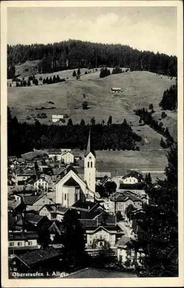 Ak Oberstaufen im Allgäu, Teilansicht, Kirche