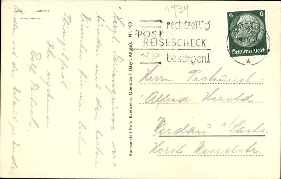 Zustand, siehe Scan, gelaufen, 1934 - ca 14 cm X 9 cm