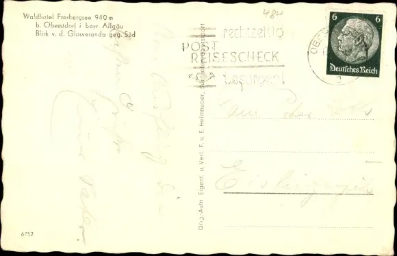 Ak Oberstdorf im Oberallgäu, Freibergsee, Waldhotel, Restaurant