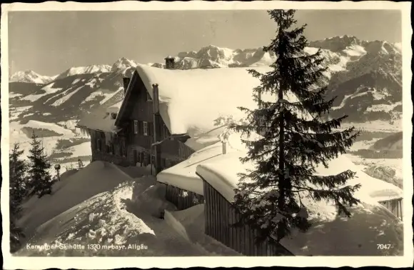 Ak Oberstdorf im Oberallgäu, Kemptner Ski Hütte, Winter