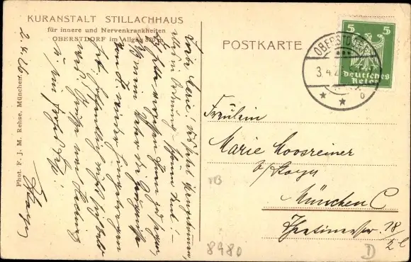 Ak Oberstdorf im Oberallgäu, Kuranstalt Stillachhaus