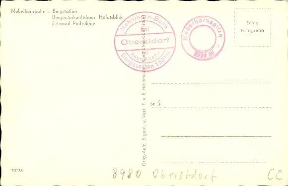 Ak Oberstdorf im Oberallgäu, Nebelhorn, Nebelhornbahn, Bergstation, Edmund Probsthaus