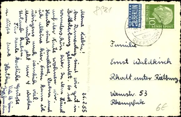 Zustand, siehe Scan, gelaufen, 1955 - ca 14 cm X 9 cm