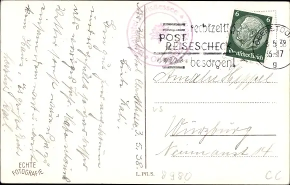 Zustand, siehe Scan, gelaufen, 1938 - ca 14 cm X 9 cm