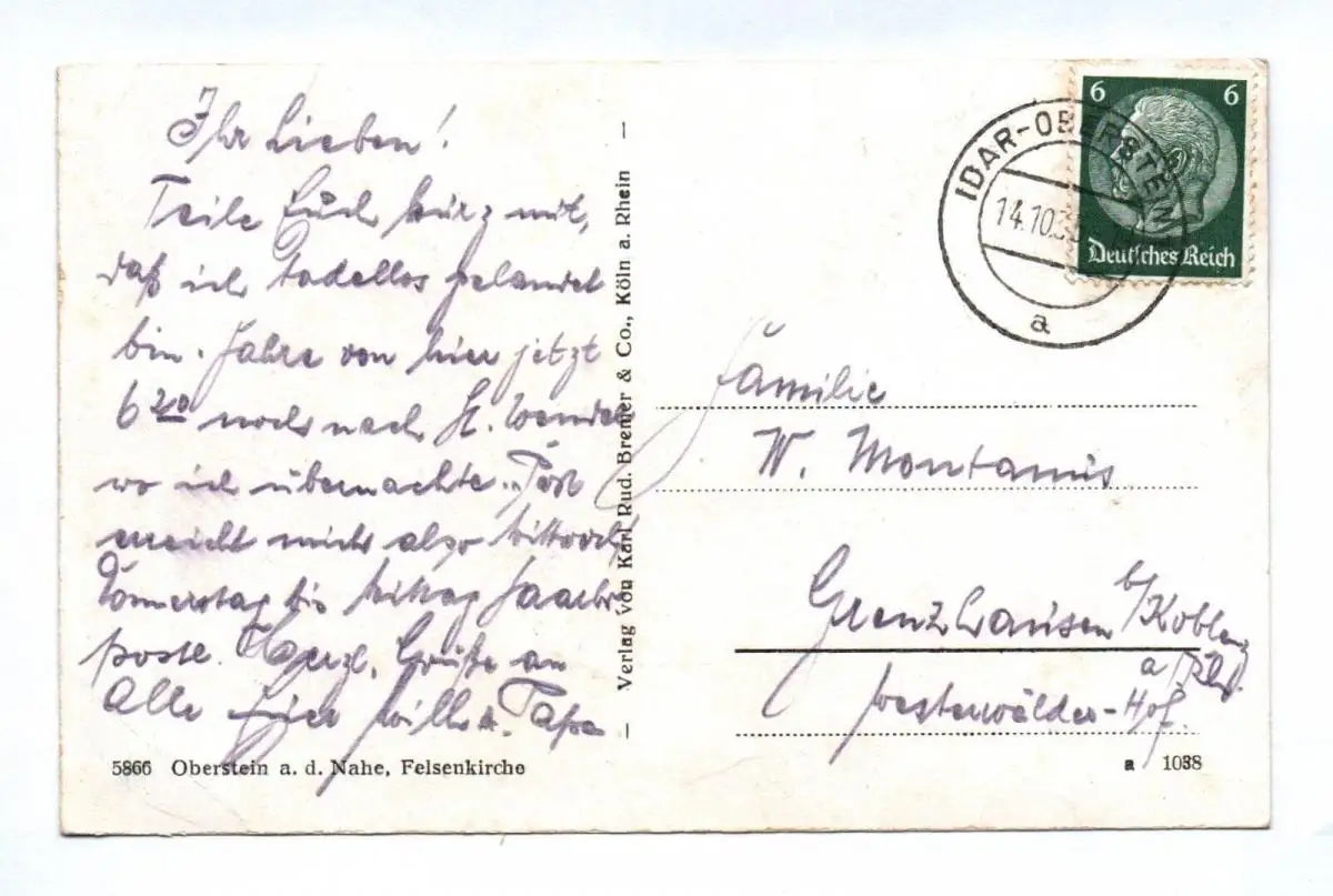 Ak Oberstein an der Nahe Felsenkirche 1935