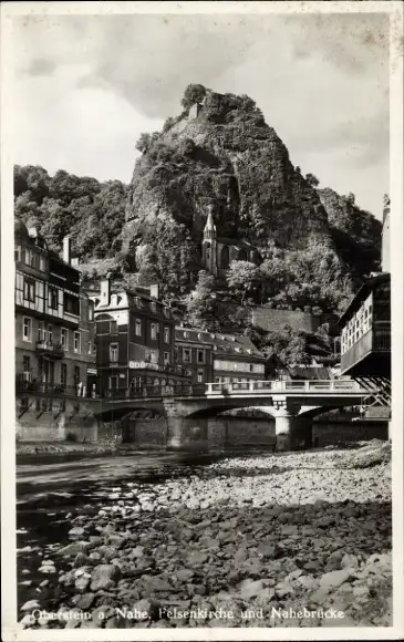 Ak Oberstein an der Nahe, Felsenkirche, Nahebrücke