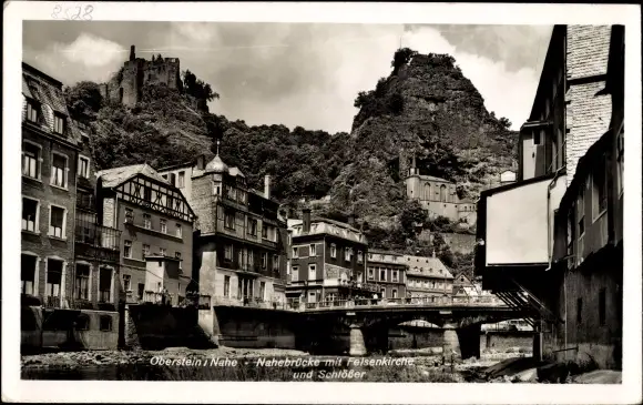 Ak Oberstein an der Nahe, Nahebrücke, Felsenkirche, Schlösser