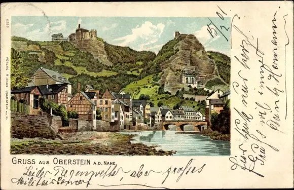 Ak Oberstein an der Nahe, Ortsansicht, Nahepartie, Brücke