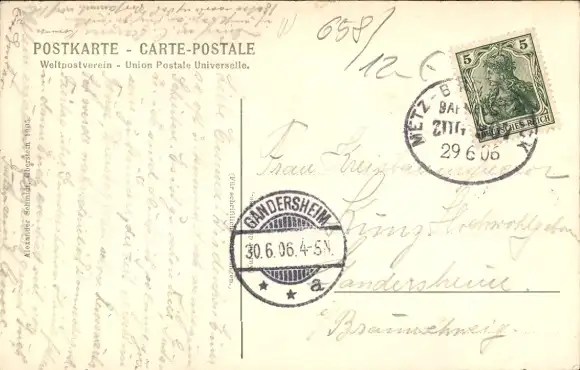 Zustand, siehe Scan, gelaufen, 1906 - ca 14 cm X 9 cm