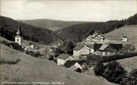 Ak Oberwarmensteinach Warmensteinach in Oberfranken, Teilansicht, Kirchturm