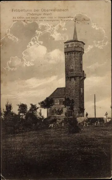 Ak Oberweissbach im Thüringer Wald, Fröbelturm, Kühe