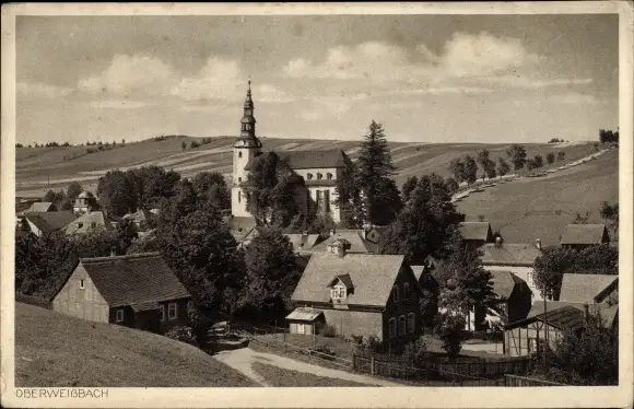 Ak Oberweißbach im Weißbachtal Thüringen, Teilansicht vom Ort, Kirche