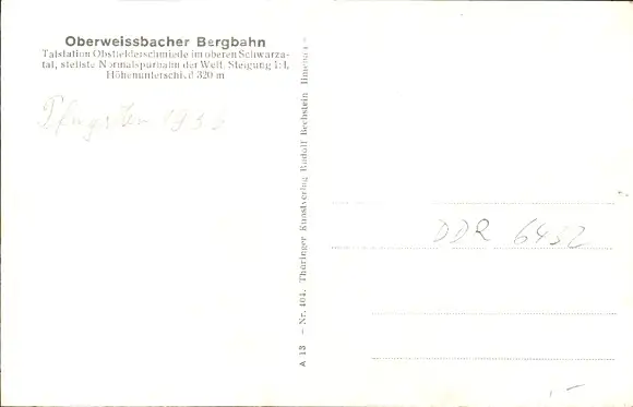 Ak Oberweißbach in Thüringen, Bergbahn Obstfelderschmiede, Ausweichstrecke, Standseilbahn