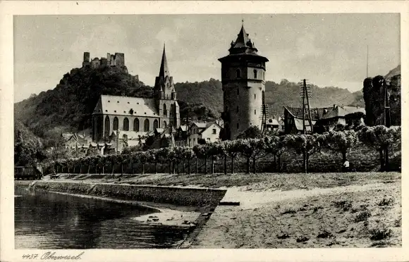 Ak Oberwesel am Rhein, Teilansicht, Kirche, Turm
