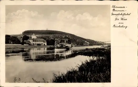 Ak Oberweser, Personendampfschifffahrt, Bückeberg, Salondampfer, Brücke, Kirche
