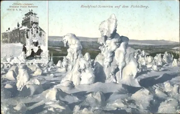 Ak Oberwiesenthal im Erzgebirge, Fichtelberg, Unterkunftshaus, Winter, Schnee