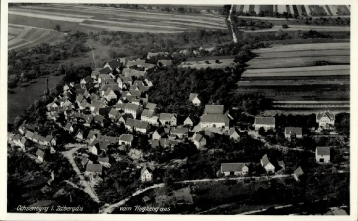 Ak Ochsenburg Zaberfeld in Württemberg, Luftaufnahme von Zabergäu, Felder im Hintergrund