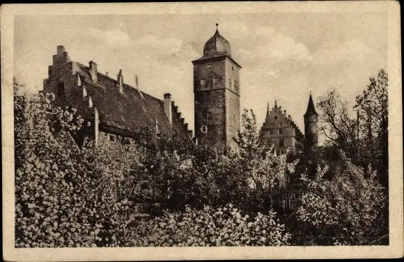 Ak Ochsenfurt am Main Unterfranken, Frohnfeste, Klingenturm, Bezirksamt mit Nikolausturm