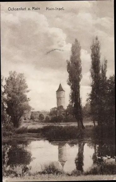 Ak Ochsenfurt am Main Unterfranken, Main Insel, Turm