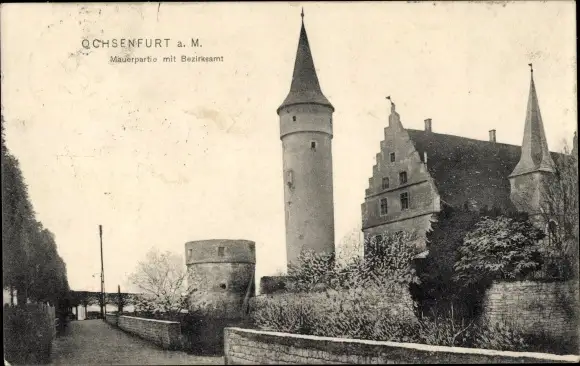 Ak Ochsenfurt am Main Unterfranken, Mauerpartie mit Bezirksamt